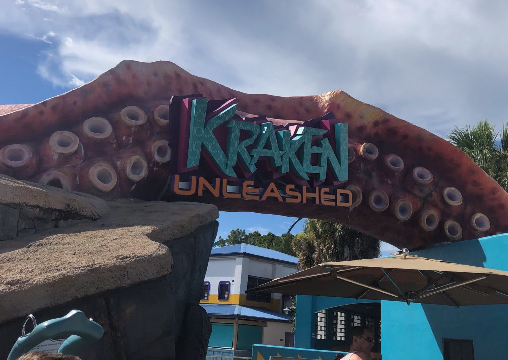 My first ride on Kraken was in the back row. After ascending the 153 foot lift hill you drop into a sort of B&M predrop, but you go into a short line of straight track before banking into the drop. The 144 foot drop is solid but nothing too insane. Because of the predrop, I think the row you are in doesn’t have too much of an impact. You already have some speed, but you’ll get pulled over a little faster in the back. Right at the bottom is a massive vertical loop, which is amazing. The first vertical loop feels almost as tall as the drop. At the bottom of the vertical loop you also pull some good G’s. The ride then goes into a smooth dive loop, which I’m a huge fan of. Right after that comes a zero-g roll. This element is a little rough in the back. By no means is it horrible, but with the over the shoulder restraints there is a little head banging. The coaster immediately dives into a ditch which can act as a near miss element on the edge. The coaster then goes into a cobra roll, which is smooth and very intense. It’s a really nice element on the ride! The coaster then pops into the midcourse, which kills a lot of your speed and is one of the biggest downsides of this ride. The second half, which feels more like the last fourth, has a smaller vertical loop. After that it goes through a nice tunnel, and then a corkscrew which has a hint of roughness. Then the ride slides into the brakes.