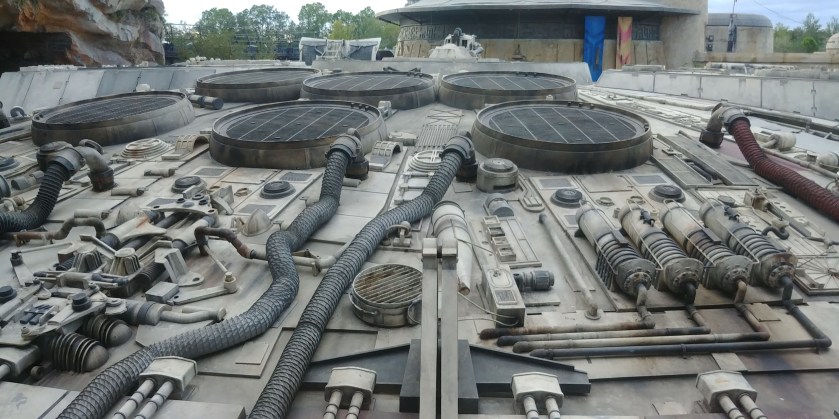 Finally, you get to your final room, which is the Falcon itself. The famous holochess table is there (it’s a great photo op) and you can find other details such as the helmet and droid Luke Skywalker used in A New Hope. In a way, it is kind of unfortunate that the ride is so efficient that you’re not in there for very long. Speaking of the efficiency, waiting for Smuggler’s Run isn’t that bad of an experience at all. Part of that is due to the excellent queue as mentioned previously, but also the ride is incredibly efficient. It loads so quickly and can handle a lot of guests at a time. And the ride currently doesn’t have a Fastpass which means that you almost never stop moving while you’re waiting in line. And the line itself is hardly ever above 90 minutes and usually stays right around an hour since it is a people eater. All around the waiting experience is pretty manageable.