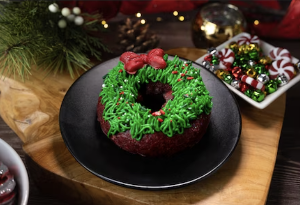 While not specified exactly what these outdoor vending locations will look like, it can be inferred they will most likely be your typical food-stands found throughout the park. These vendors will feature a Red Velvet Wreath, which is a red velvet donut topped with green, red and white “holiday” sprinkles and a buttercream bow.
