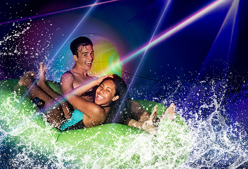 Next season, the excitement at Adventure Bay will shine even brighter as the Typhoon is reimagined into Hyperlight, an immersive water slide experience featuring lighting effects and soundscapes. Guests are encouraged to join up with friends and head to Adventure Bay to experience this fully sensory upgrade. Riders will glide through a brilliantly illuminated tunnel, filled with synchronized laser lights and surround sound, transforming the ride into a thrilling descent.