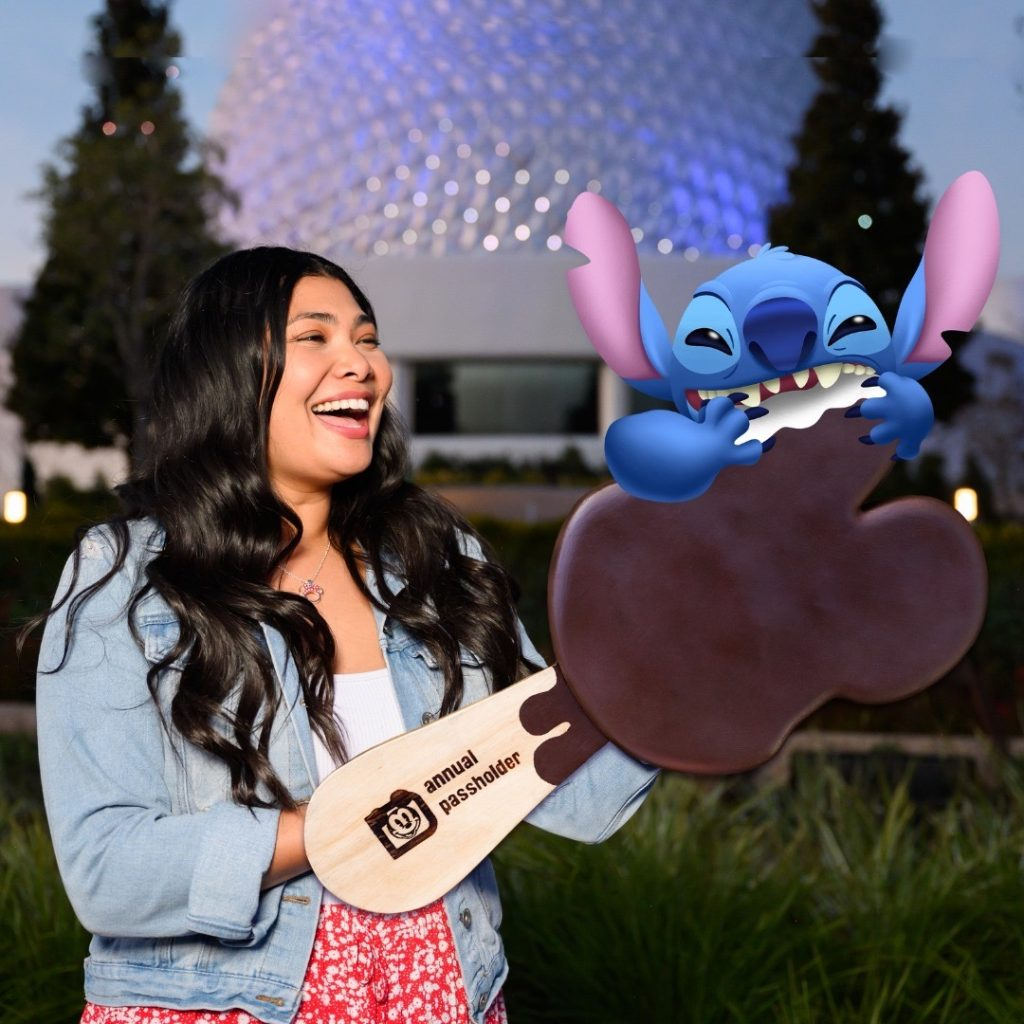 That’s not the only place guests can technically find Stitch in Tomorrowland. In 2022, for the film’s 20th anniversary, a Stitch “Experiment 626” photo op was added near Cosmic Ray’s Starlight Cafe. This is actually one of those “Magic Shot” photo ops where your picture is taken and then various effects are added afterwards, which I suppose makes it more interesting even if some of the photo is altered. For the life of me, I couldn’t find a picture of the photo op in Tomorrowland, so the bottom one is actually in Epcot. It features the same “Magic Shot” editing as the others, and there are actually a couple more locations you can find Stitch. Still, if you happen to have a photo of the picture in Tomorrowland, please let me know!