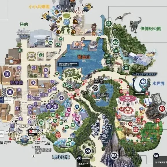 Universal Studios Singapore is a compact, highly themed park located on Sentosa Island in Singapore. Despite its smaller size, it features several exclusive attractions and distinct lands not found elsewhere. Its tropical setting and focused layout give it a different feel from the larger Universal resorts.